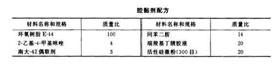 ④按上表胶黏剂配方称量、搅匀。在粘接面涂胶,对合挤紧加压。